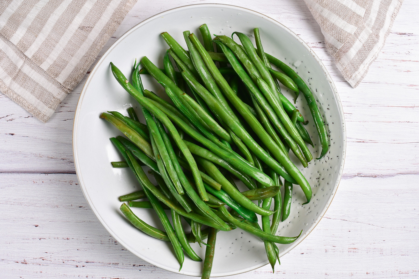 Put the green beans in boiling salted water for 5 minutes, then put them in ice water, and then drain the water.