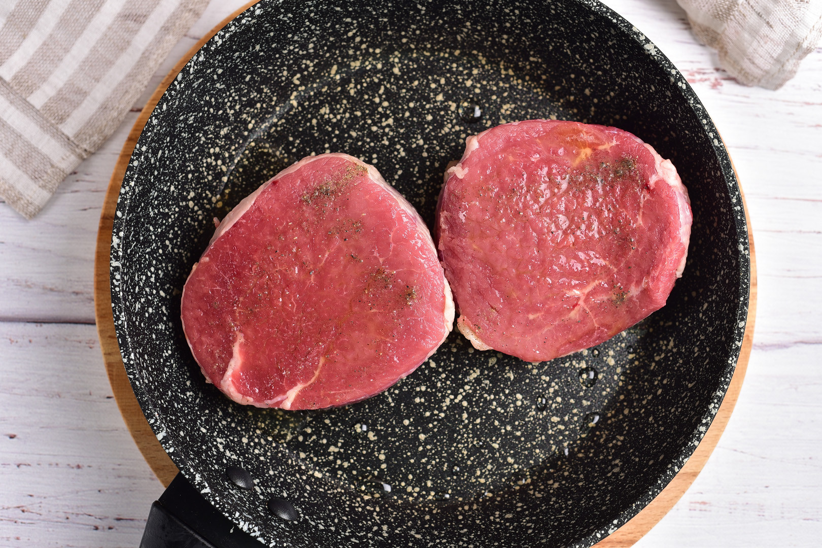Place the beef medallions in a hot skillet. Fry on medium heat for about 5-6 minutes on one side, then fry for another 5 minutes on the other side. Then turn off the heat and cover the pan with a lid, wait another 8-10 minutes. If you are looking for medium-rare medallions, shorten the cooking time.