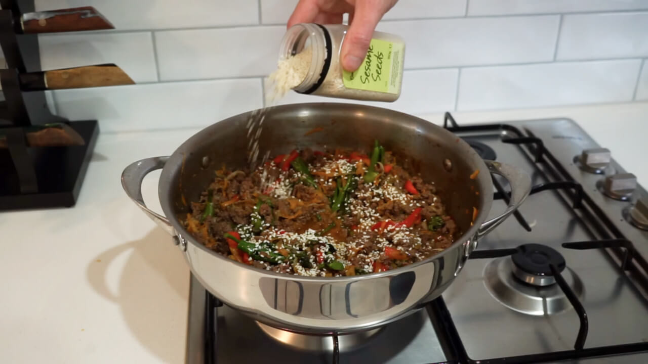 Finally, add some sesame seeds to the mixture.