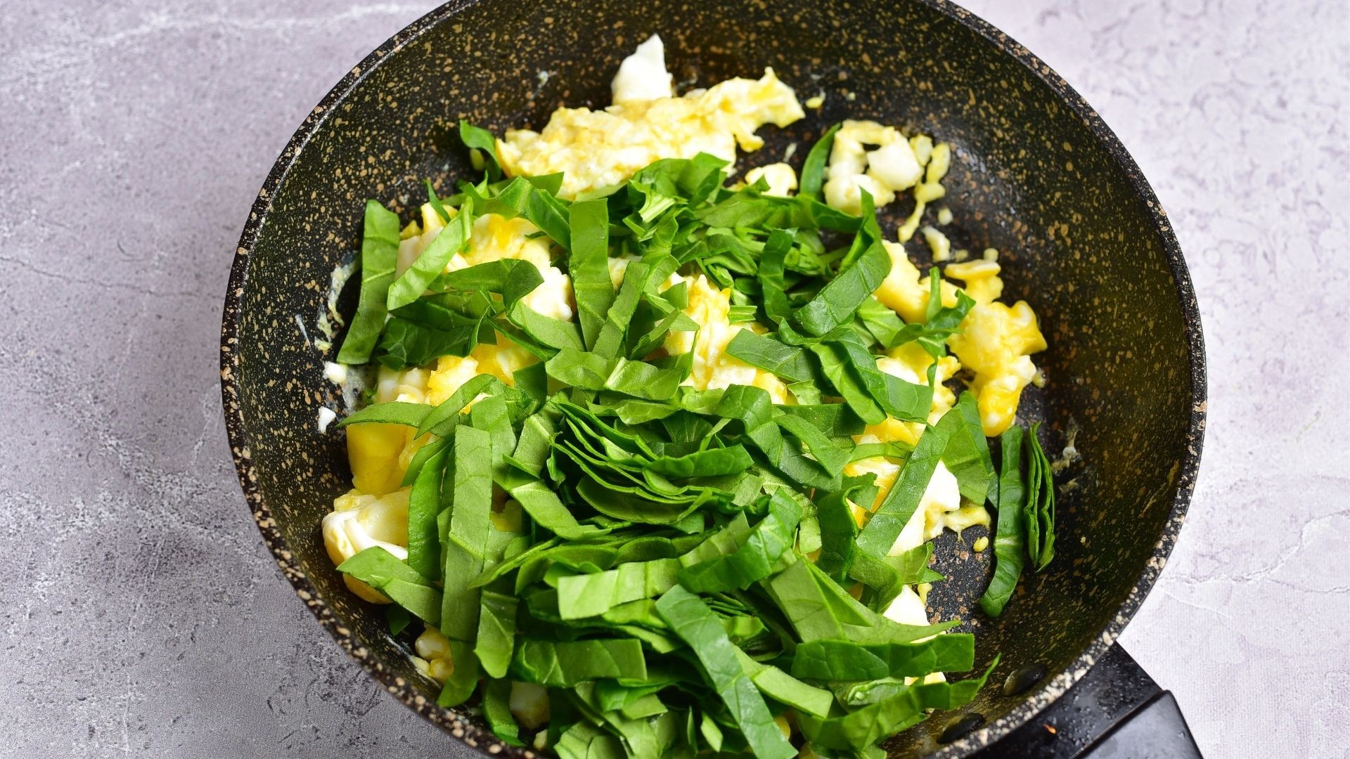 Add finely chopped spinach and stir. Cook for another two minutes and remove the pan from the heat.