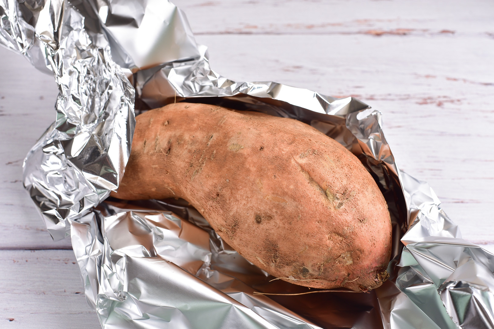 First, wash the sweet potatoes and make some punctures with a fork. Bake in foil in the oven until soft. Roasting time depends on the size of the sweet potato. At 180 degrees C, it may take 30 to 50 minutes.