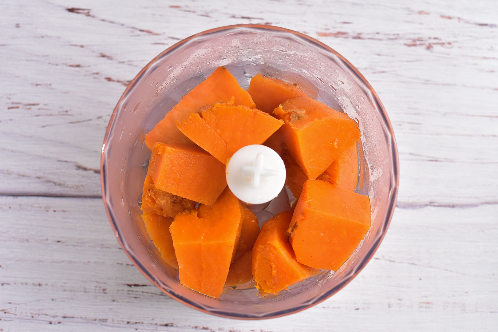 Peel and chop the baked sweet potato, place in a blender and chop until lump-free puree is obtained.