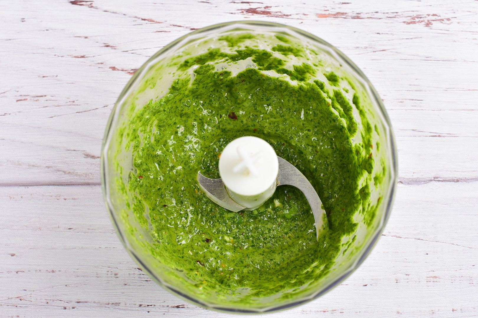 Pour in olive oil and add ground cumin, a pinch of salt and pepper. Grind until you have a smooth, thick chimichurri sauce.