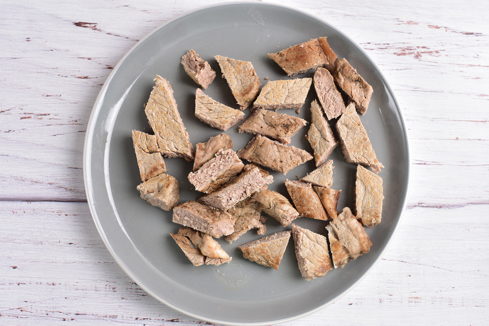 Cut the steak into small pieces.