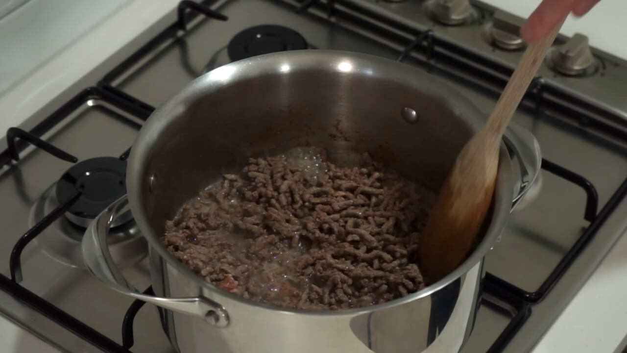 In a separate pan, cook 500g of beef mince until browned and cooked through. Drain off any excess fat.