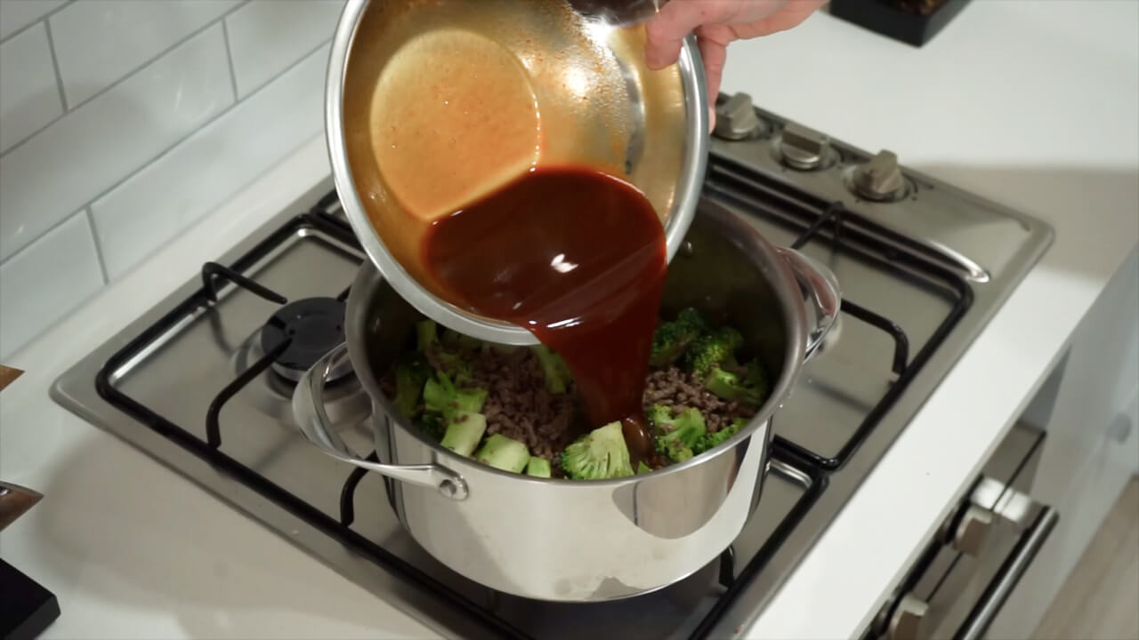 Pour the firecracker sauce over the beef and broccoli mixture and stir to combine. Cook for an additional 2-3 minutes until the sauce has thickened and caramelized slightly.