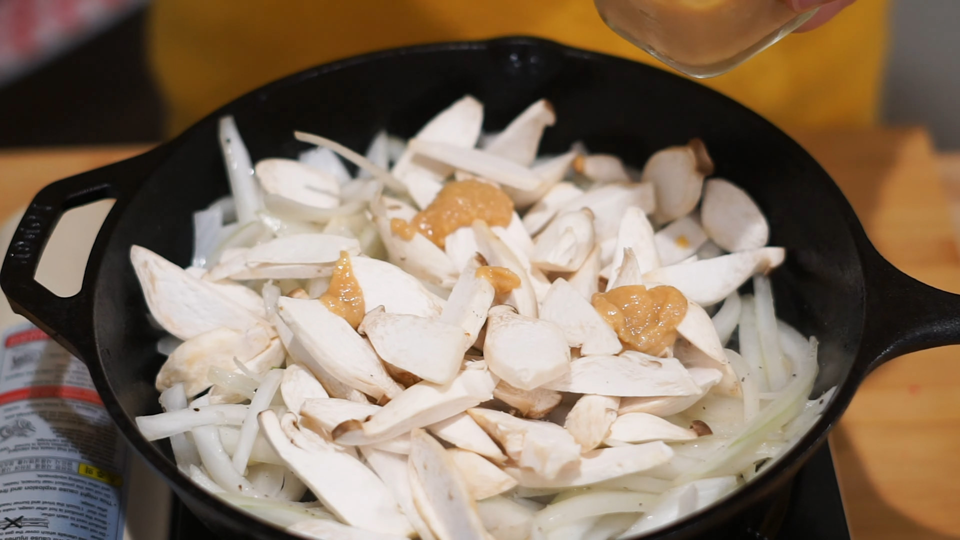 Add 200g mushrooms(previously chopped in slices), add 2 tablespoons of marinade miso paste, and mixed it all.