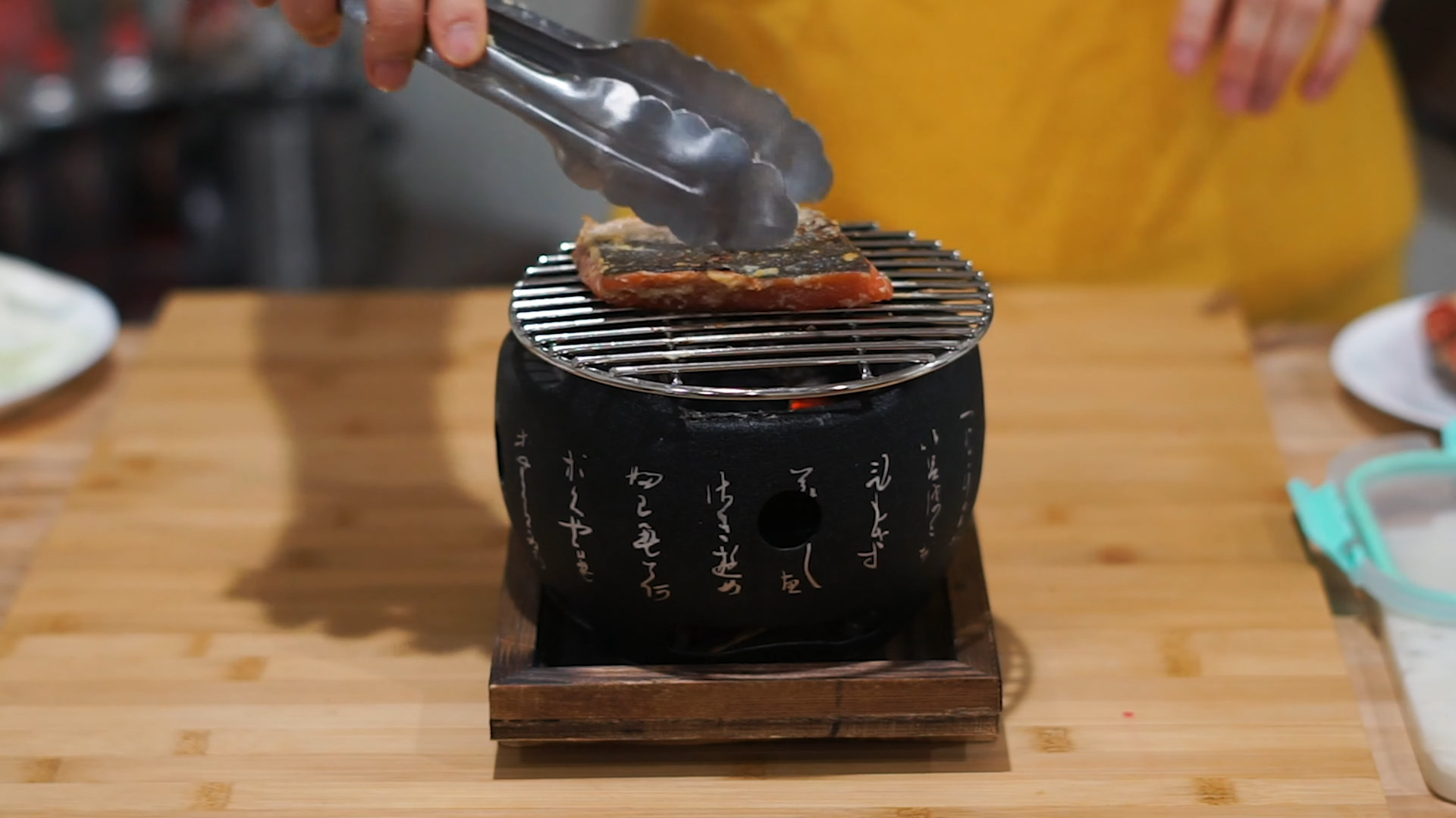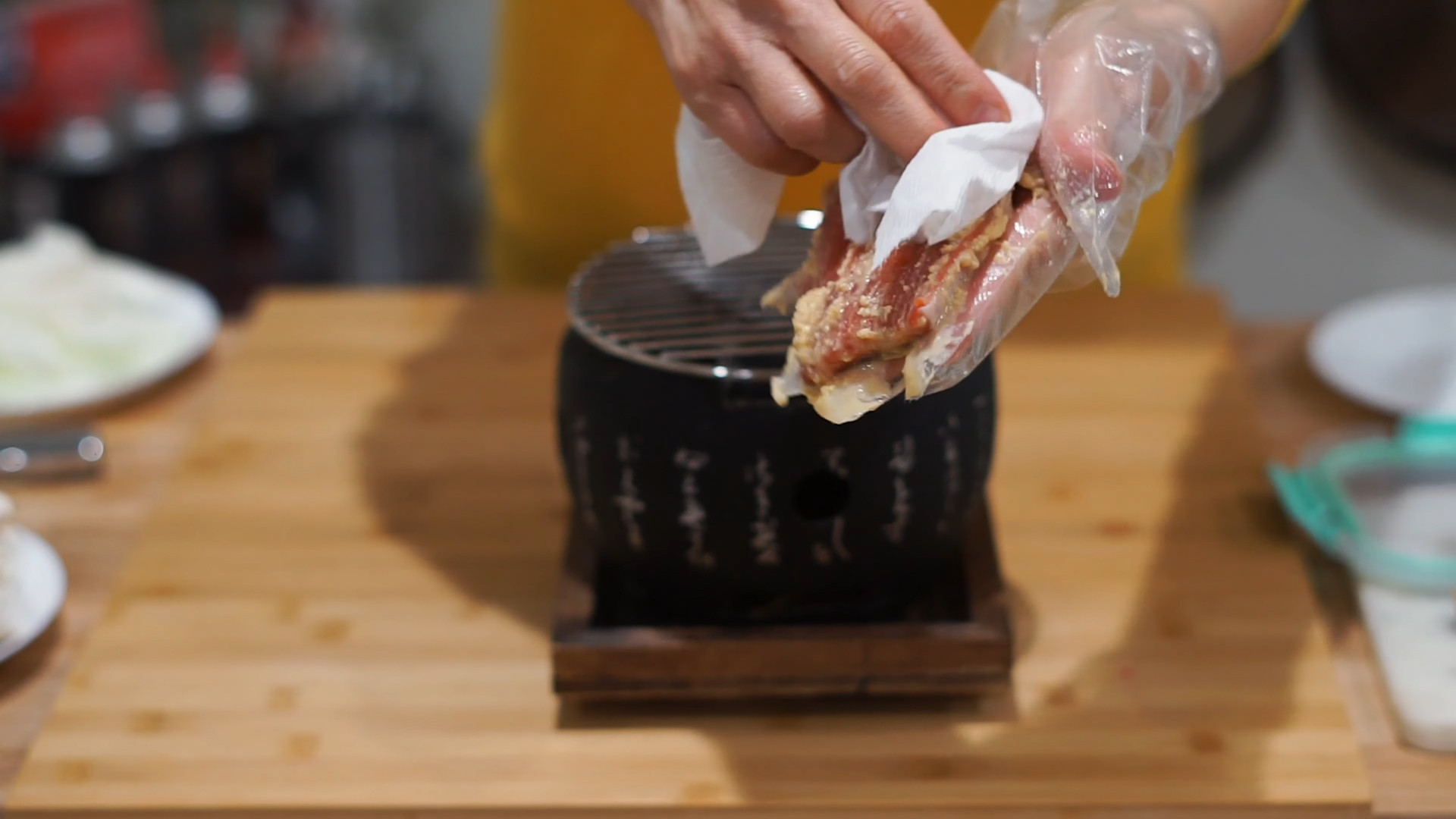 Clean the miso marinade over the salmon fillets with cook paper.