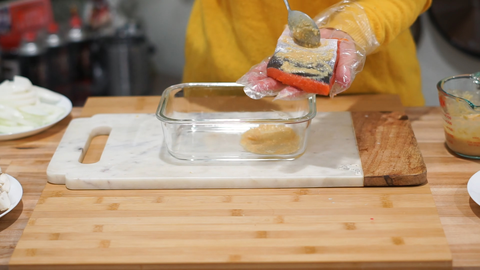 Cover the salmon fillet with the miso marinade on all sides and put it in the recipient.