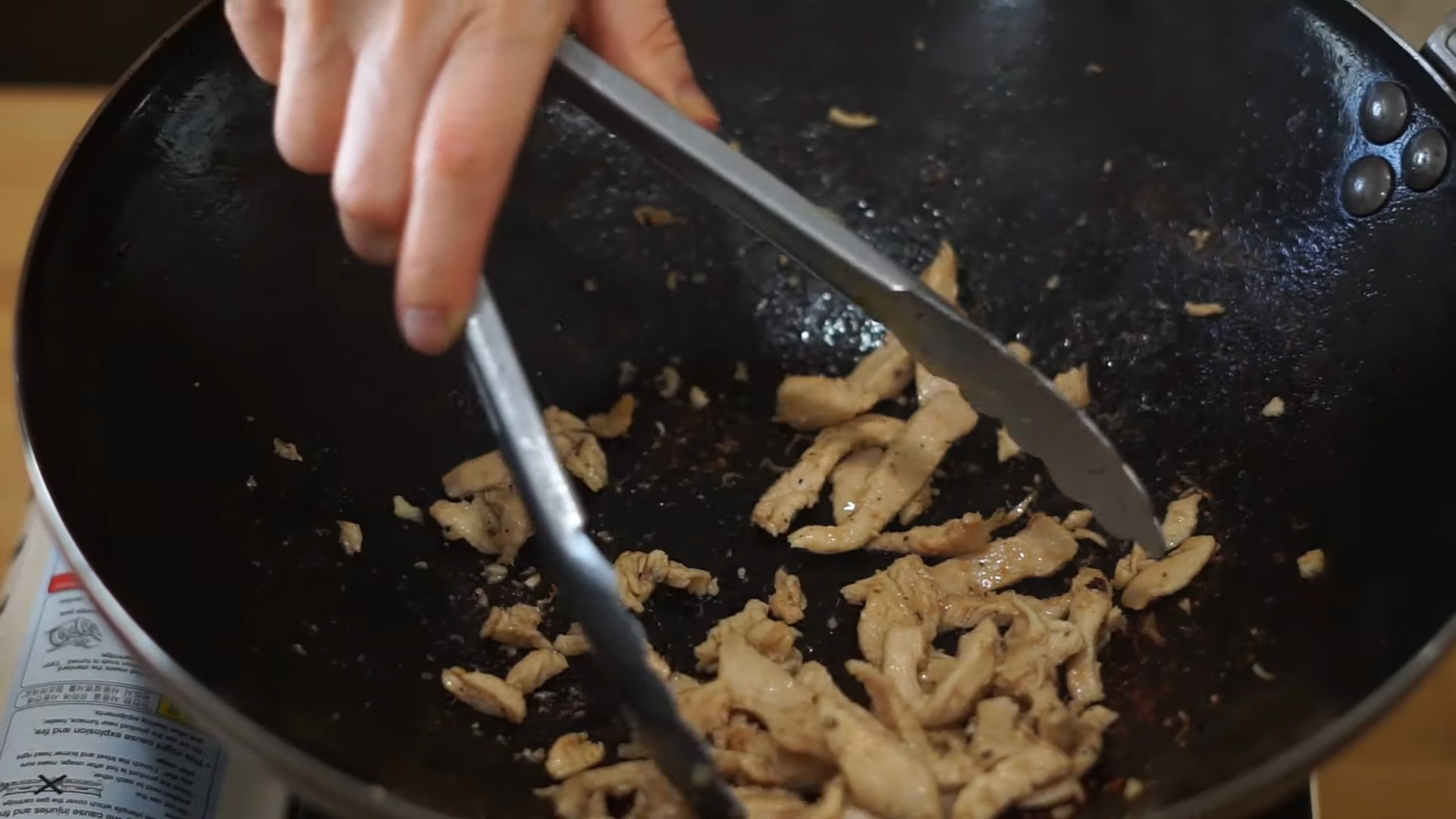 In the same pan add 1 tablespoon of oil, 226g chicken breast sliced, 1 teaspoon of soy sauce, and salt & pepper to taste. Cook it for 5 to 8 minutes on medium-high. After the chicken is fully cooked, take it out of the pan.