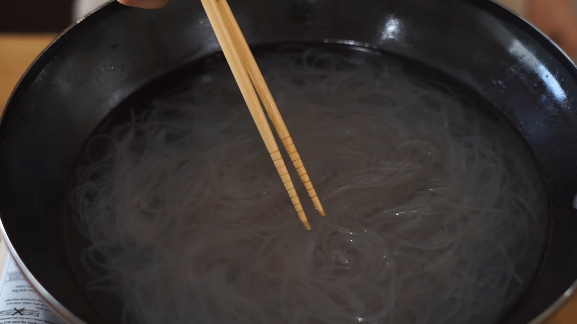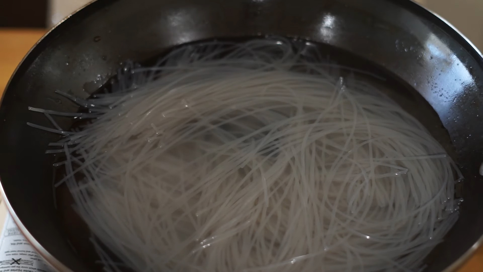 In the same pan add water and leave it to boil, add 150g of glass noodles, and cook it for no more than 5 minutes.