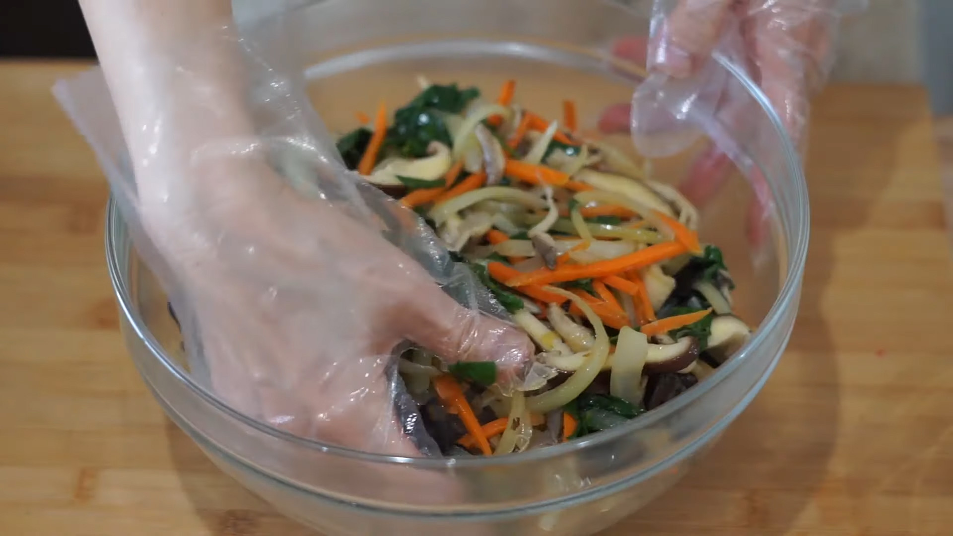 Soak 150g of glass noodles in warm water for 1 hour.