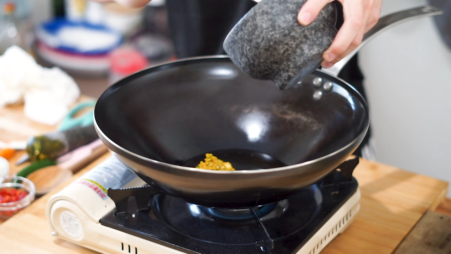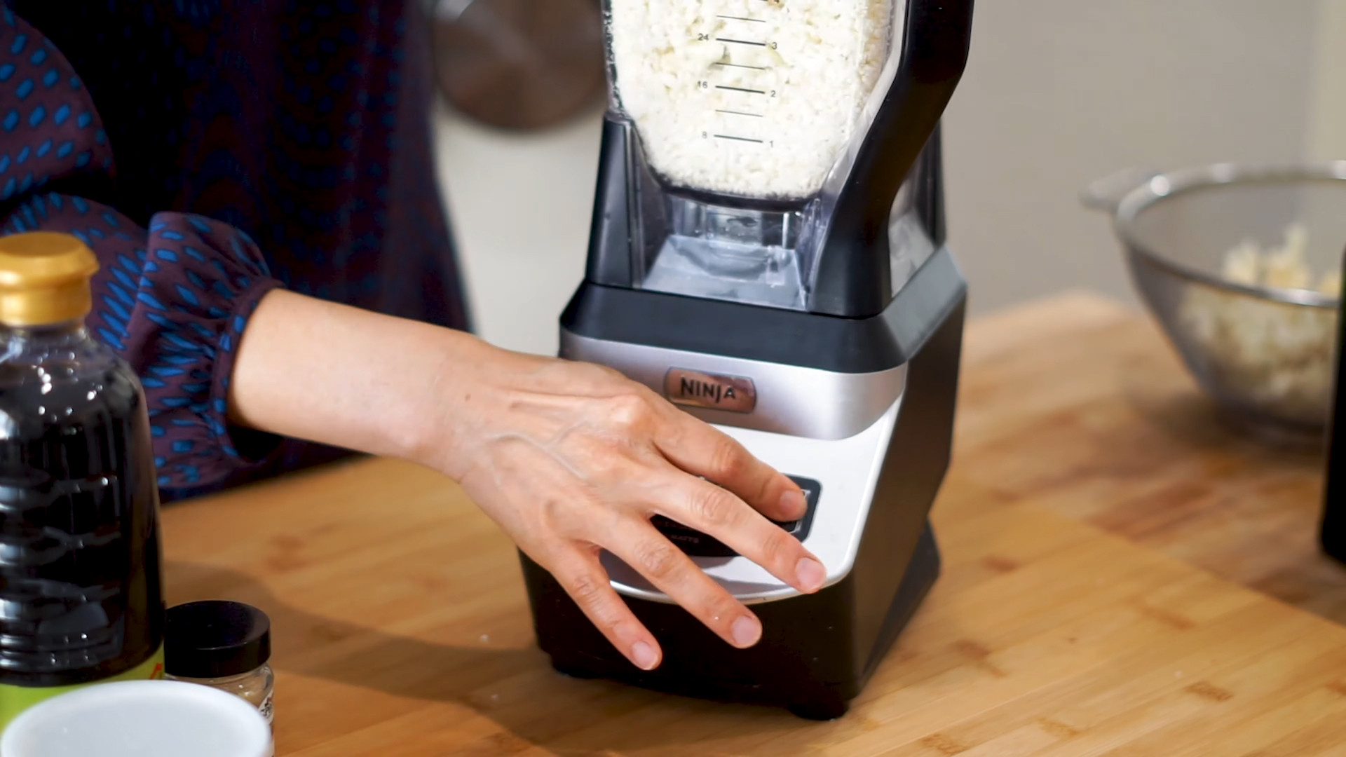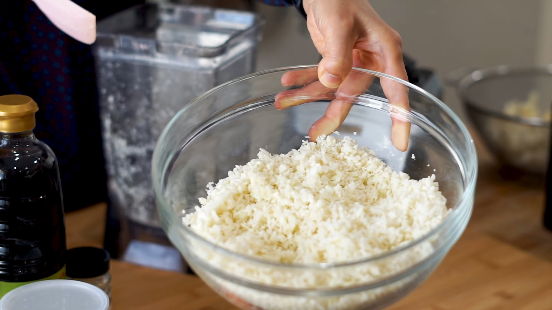 Grind 450g of cauliflower in a blender or grate with a cheese grater.