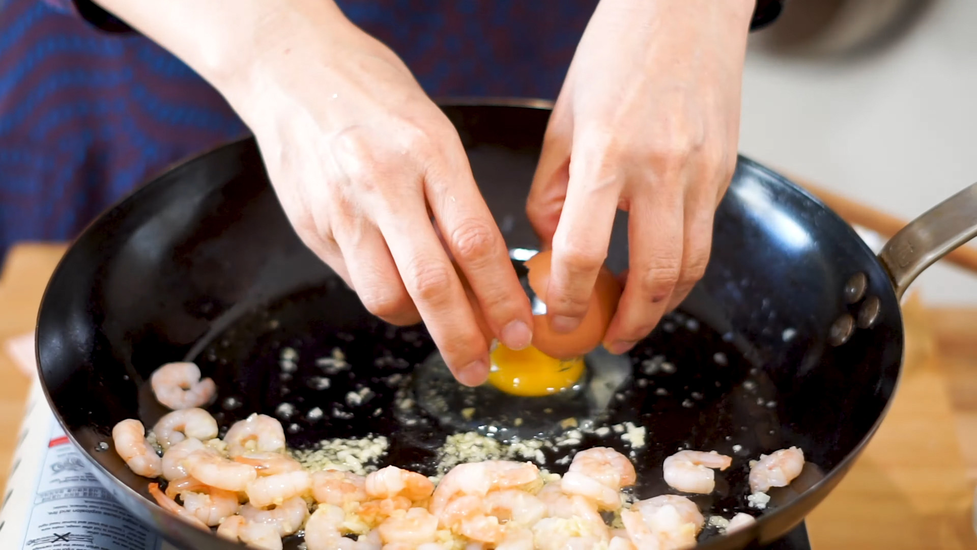 In the same pan add 2 large eggs and scramble with the shrimps.