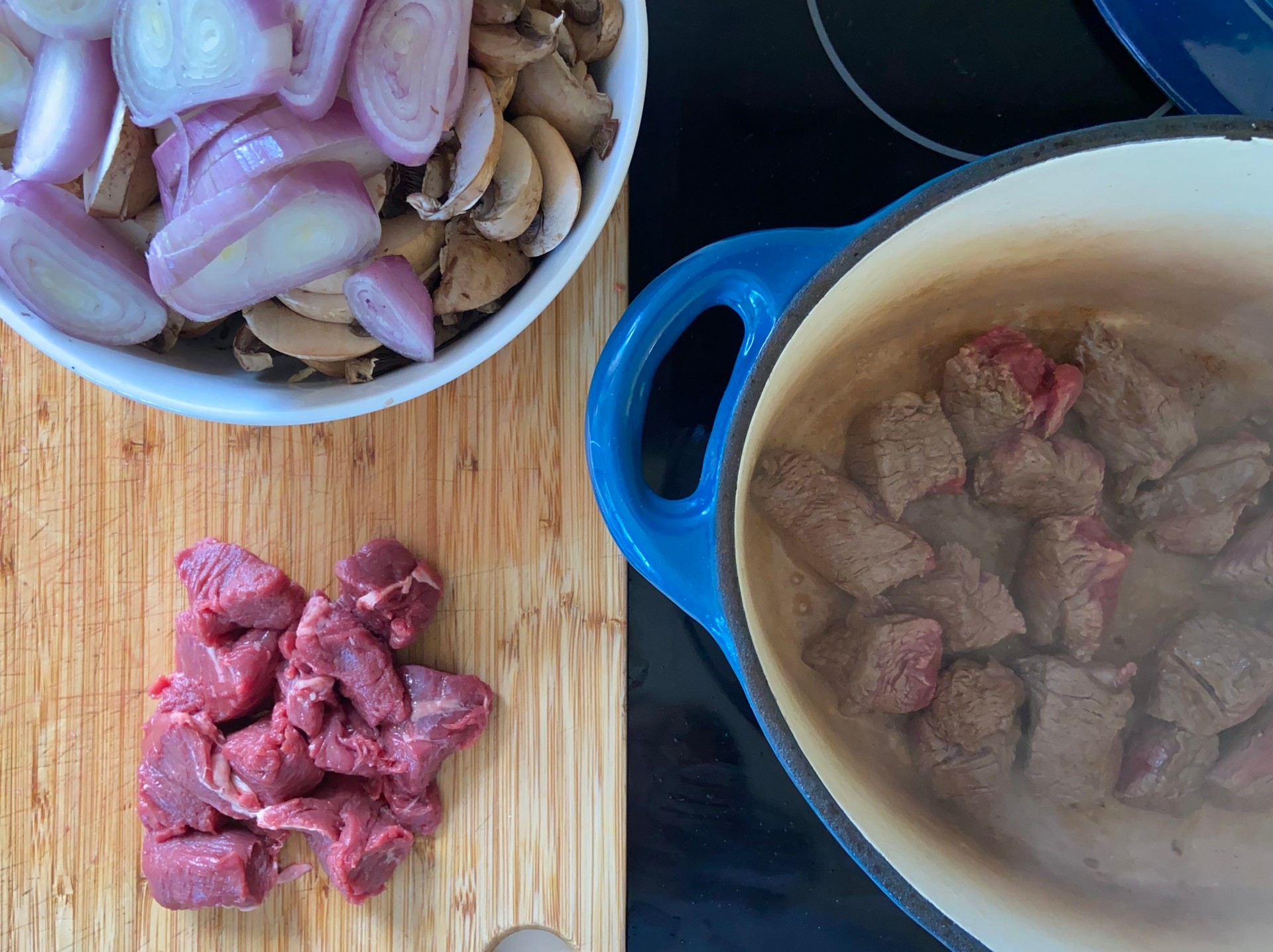 Heat half the coconut oil in a heavy-based pot over high heat. Cook the beef in 2-3 batches, turning occasionally until browned. Remove and set aside.