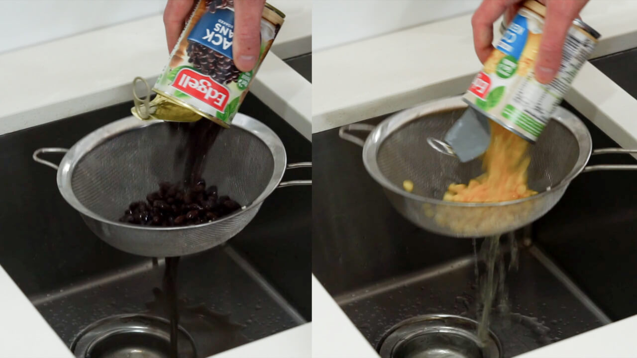 Rinse and drain 1 can of black beans.
