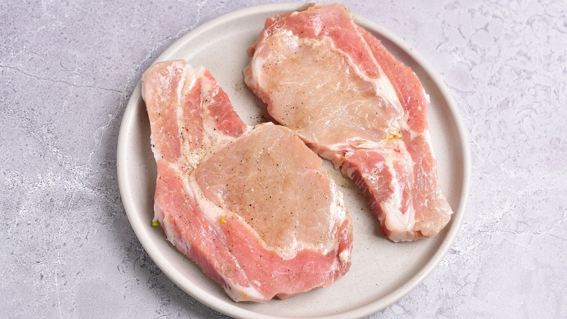 Wash and dry the pork steaks, spread with oil, sprinkle with spices, salt and leave for 10 minutes. Then fry them on the grill or in a pan - 4 minutes on each side, until completely cooked.