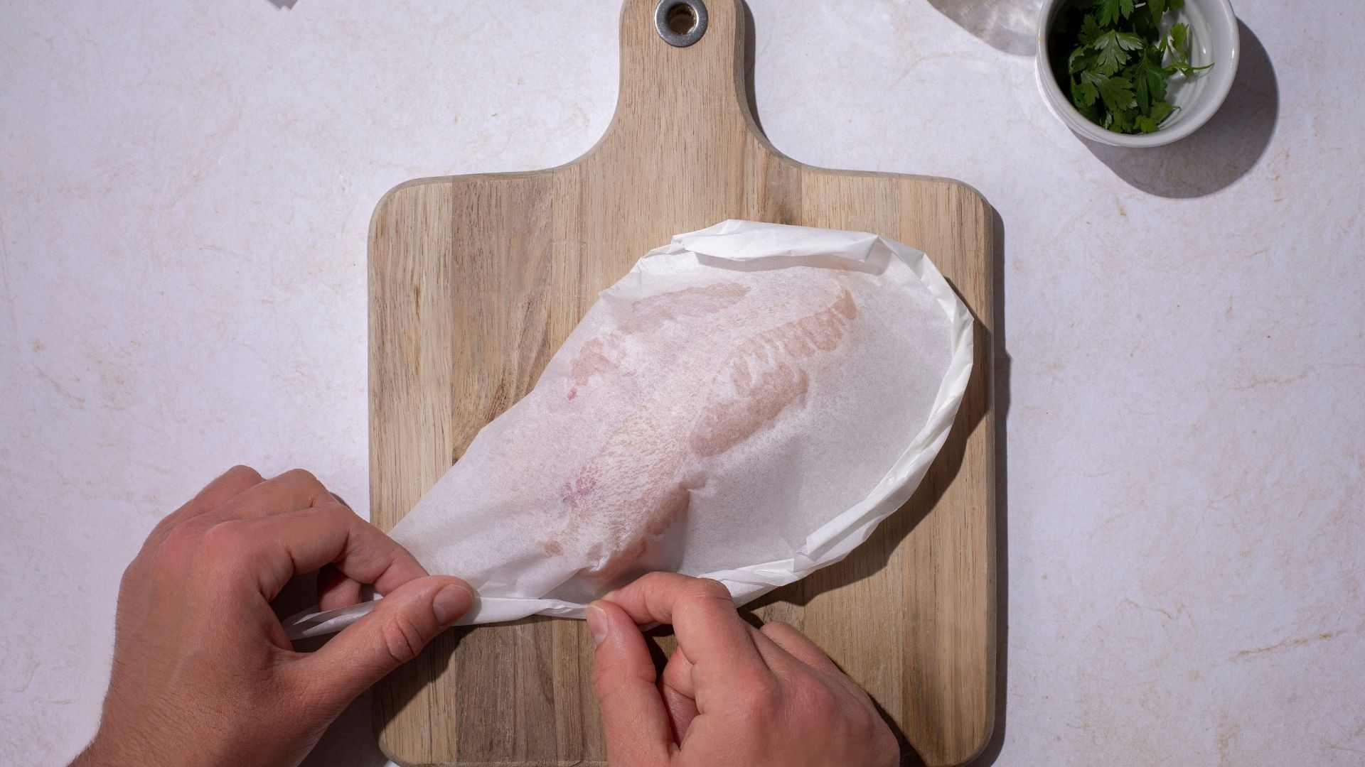 Prepare chicken marinade: in a bowl, mix together garlic, ginger, salt, pepper, garam masala, lemon juice and yogurt. Spread the marinade over chicken breast and let marinate in the fridge for at least two hours (preferably overnight). After that time, preheat the oven to 220℃ and remove excess marinade from the chicken. Wrap the chicken in parchment paper, add the onion and bake for about 20-25 minutes, or until chicken is cooked through.